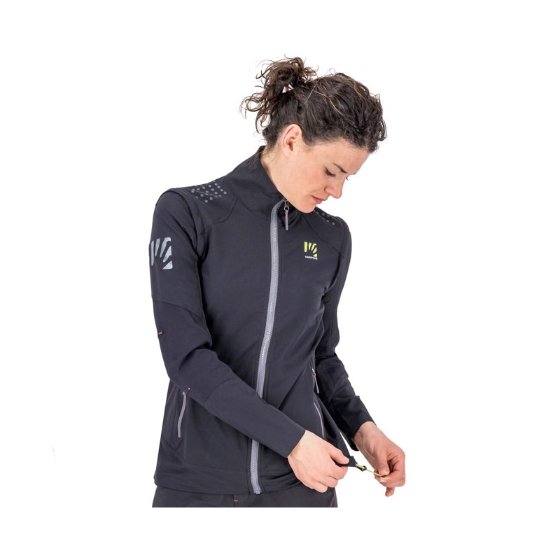 Giacca in K-Shell elastico e traspirante, rinforzata in Cordura® sul gomito, con maniche staccabili. Offre una buona termicità anche con temperature rigide. Gli inserti sottomanica e schiena sono in tessuto bielastico per maggior libertà di movimento. Stampa al silicone antiscivolo sulle spalle. Il capo monta tutte zip YKK®.