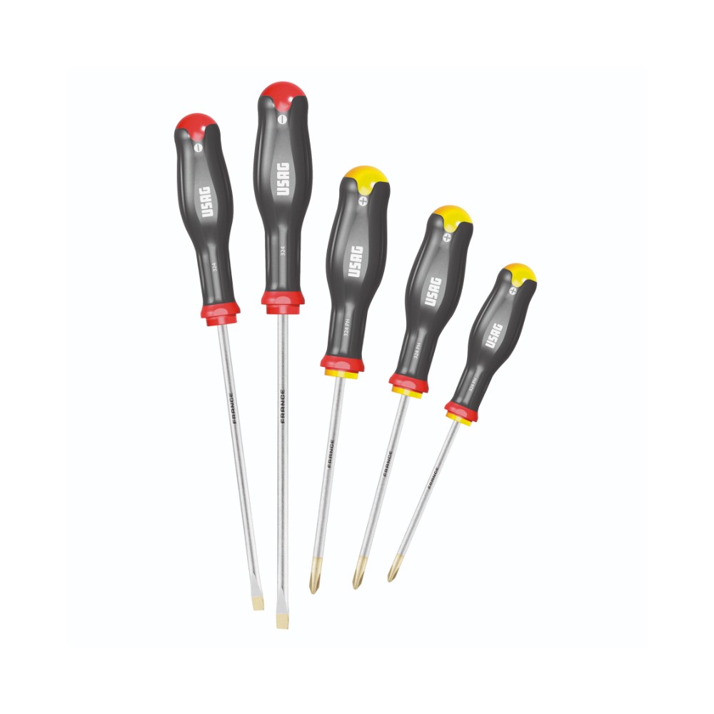 - Impugnatura ergonomica trimateriale con rivestimento soft grip, resistente ad olii ed agenti chimici
